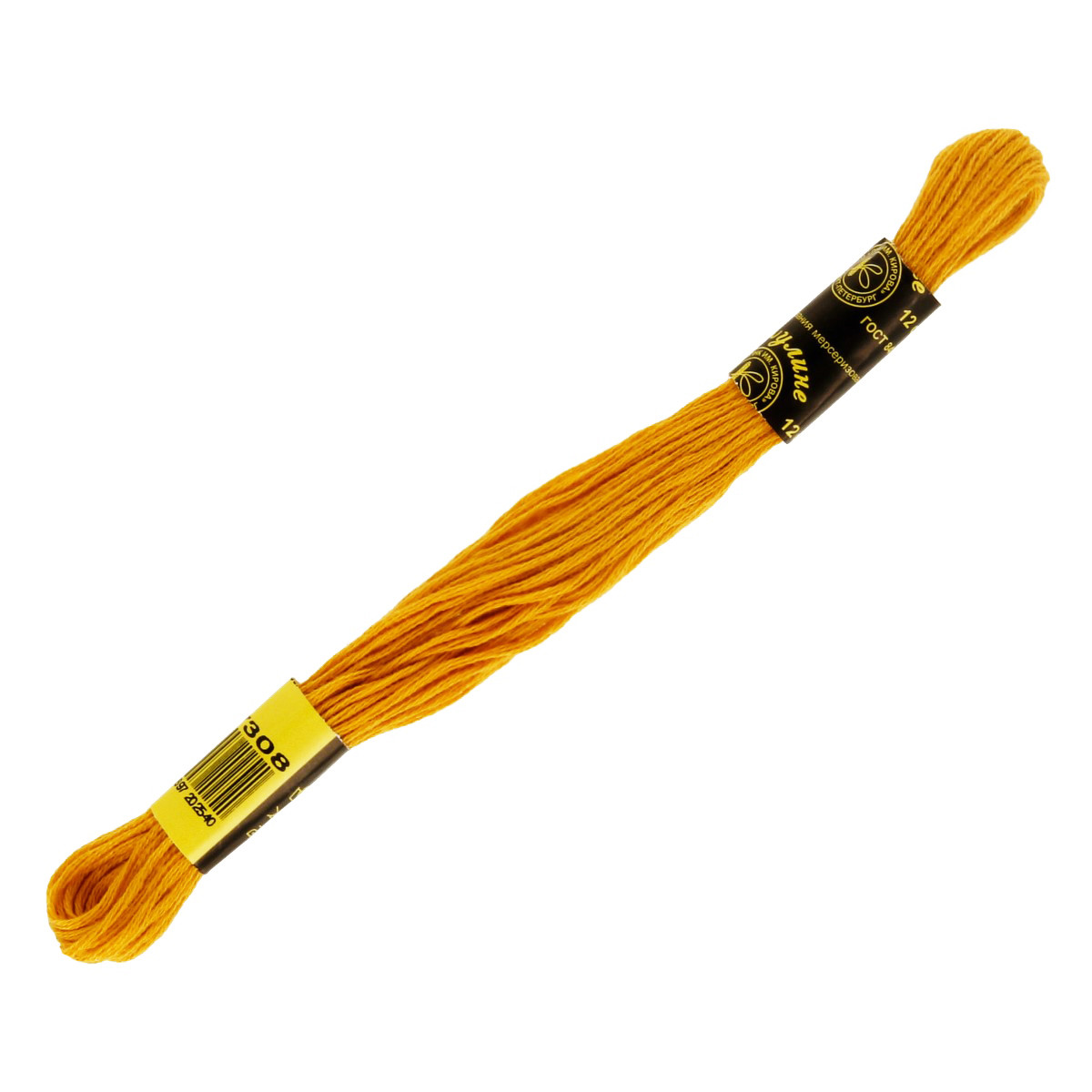 Нитки для вышивания " ПНК им. Кирова" мулине 100% мерсеризованный хлопок 8 м №7308 золотистый