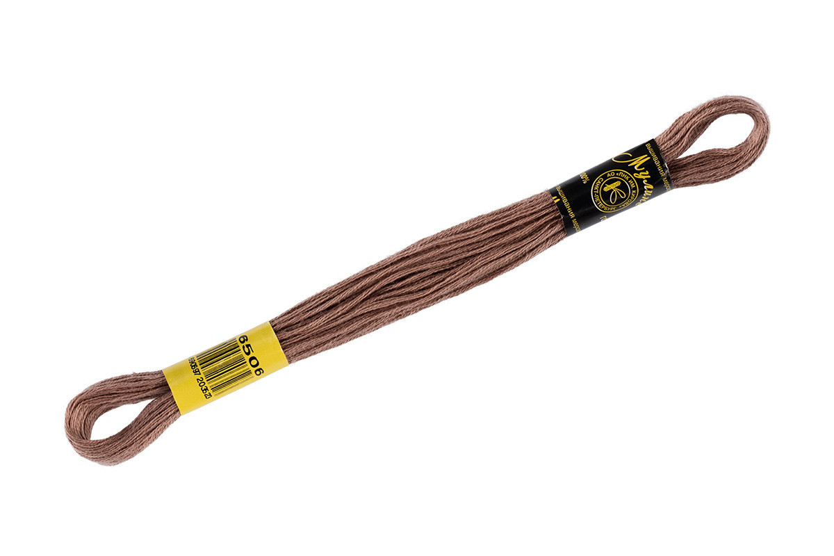 Нитки для вышивания " ПНК им. Кирова" мулине 100% мерсеризованный хлопок 8 м №6506 сер. коричневый