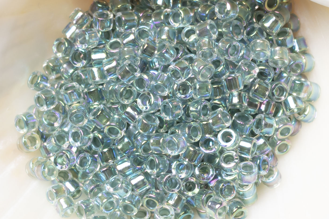 Бисер Япония MIYUKI Delica цилиндрический 11/0 5г DB-0084 светло-морская пена радужный с цветной линией кристалл